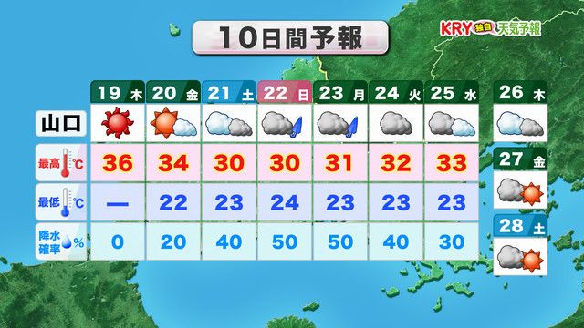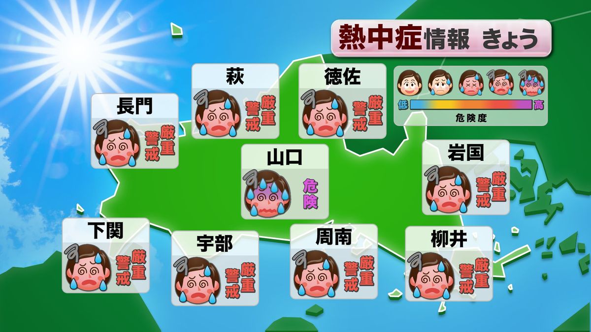 【山口天気 朝刊6/19】とにかく暑い!!県内で最も早い猛暑日に 熱中症の危険大! 万全の暑さ対策を