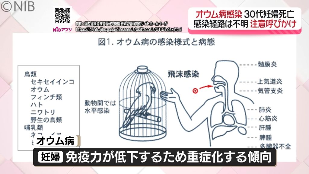 県は12日、トリのフンを吸い込むなどして感染する「オウム病」で、30代の妊婦が死亡したと発表しました。