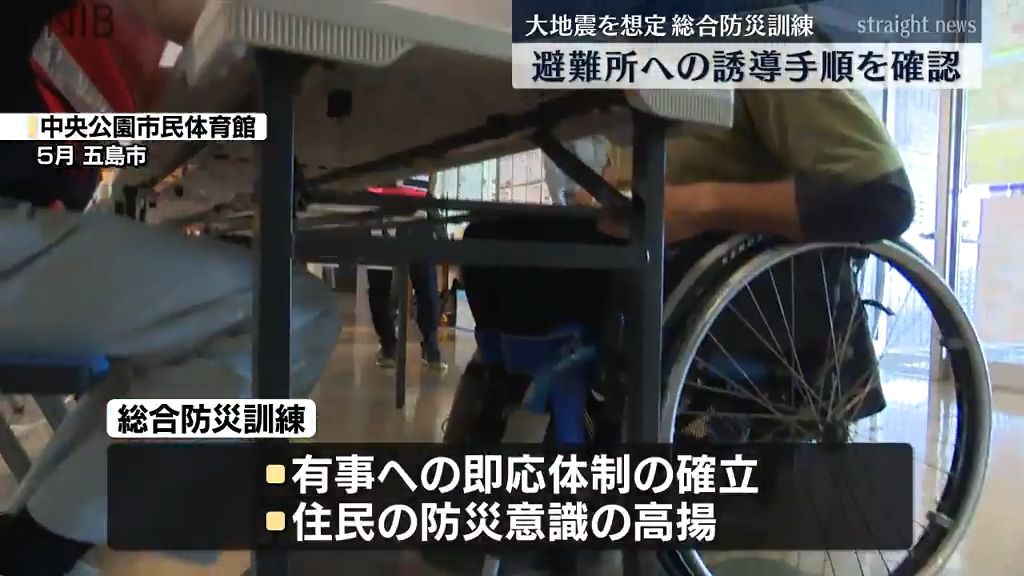 五島市では大地震が起きたことを想定し、避難所の設置や運営訓練を実施。